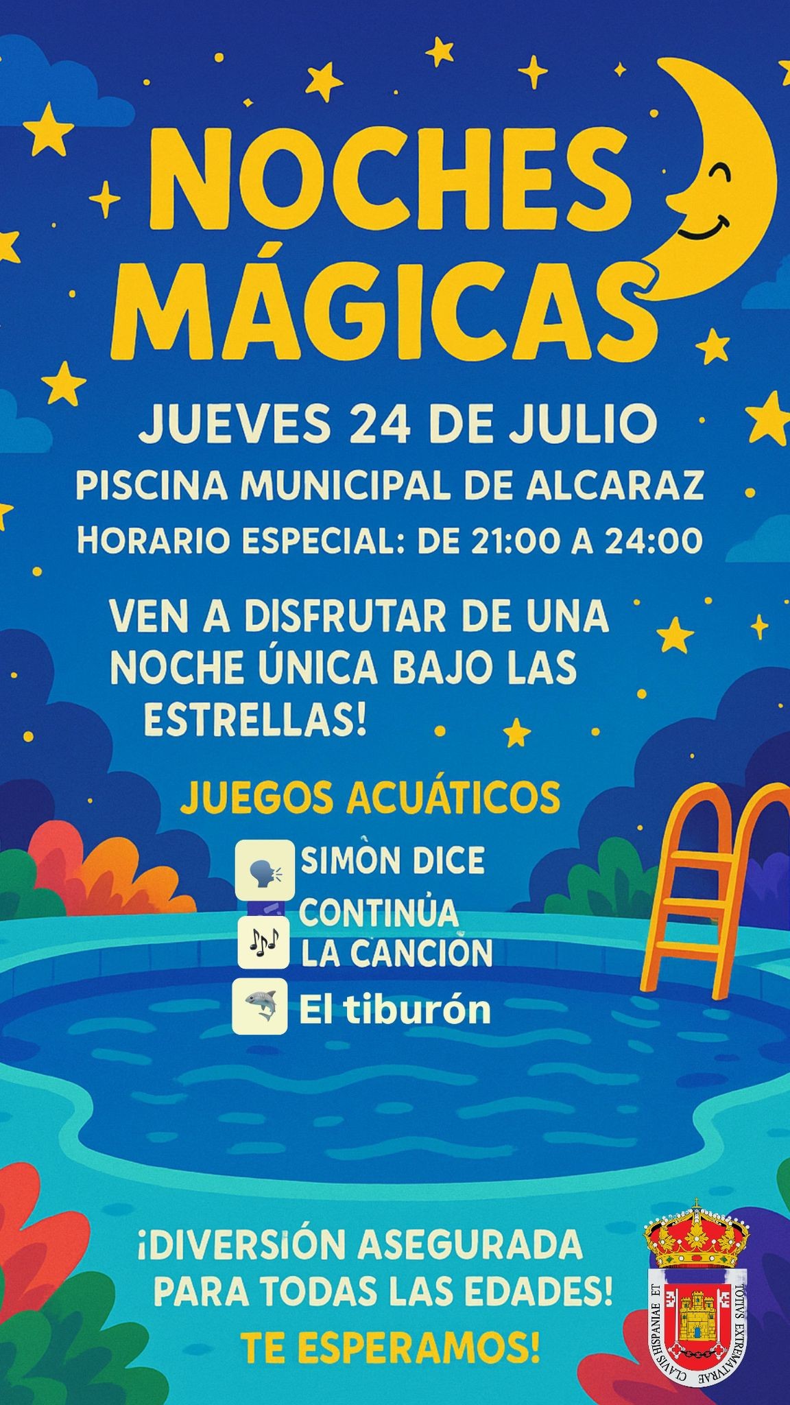 El Ayuntamiento de Alcaraz ha programado para el jueves 24 de julio una velada especial en la piscina municipal con motivo de la actividad “Noches Mágicas”, una iniciativa que busca ofrecer una alternativa de ocio refrescante, familiar y participativa durante las noches de verano.