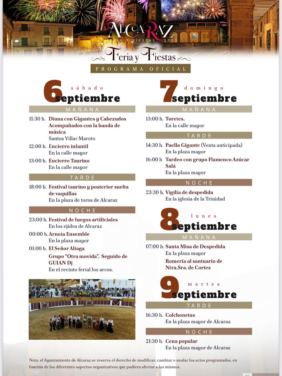Las fiestas de Alcaraz continúan este domingo 7 de septiembre cargadas de ambiente, tradición y mucho sabor.