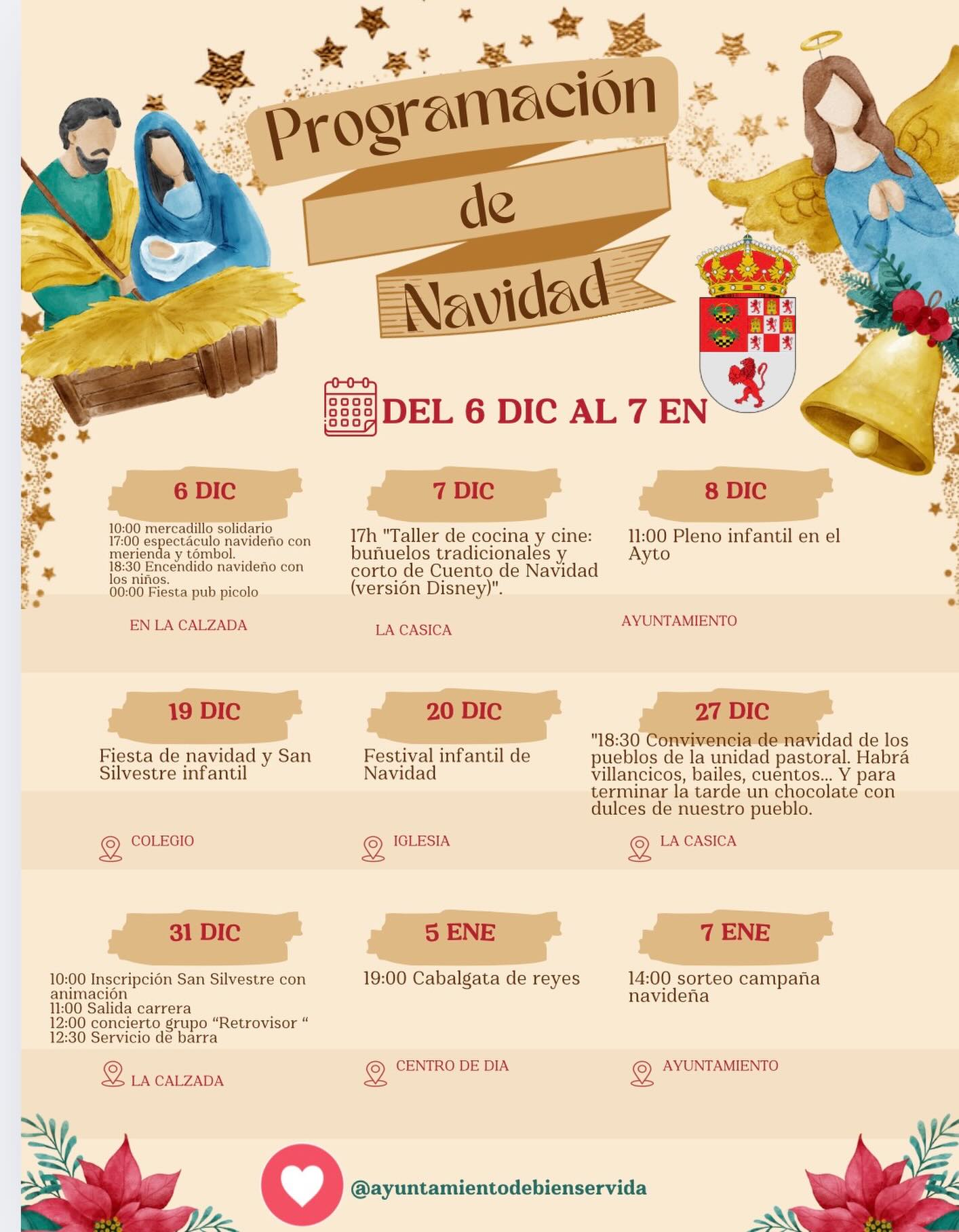 La propuesta, elaborada en colaboración con las asociaciones locales, incluye eventos culturales, infantiles, deportivos y festivos que convertirán a Bienservida en un punto de encuentro familiar durante todo el mes de diciembre y los primeros días de enero.