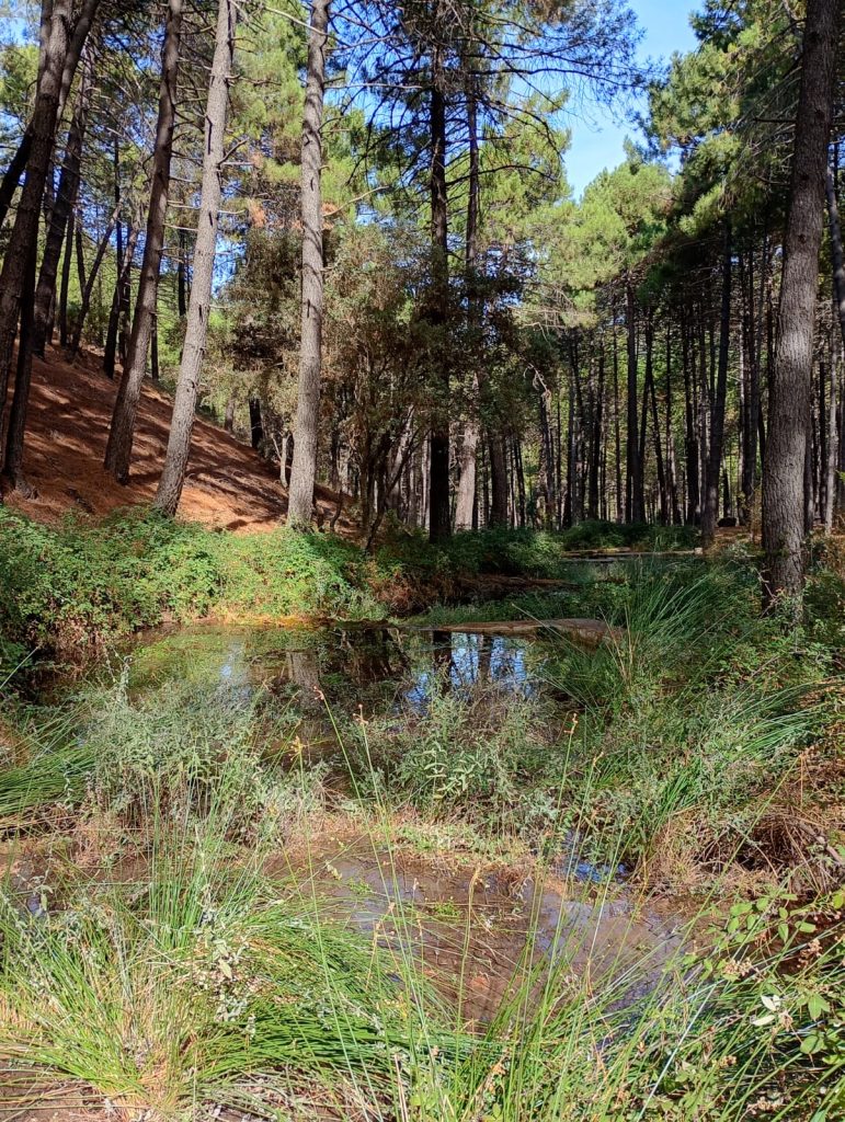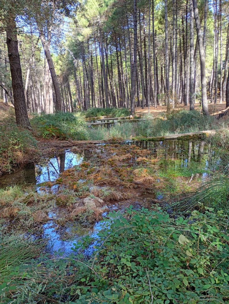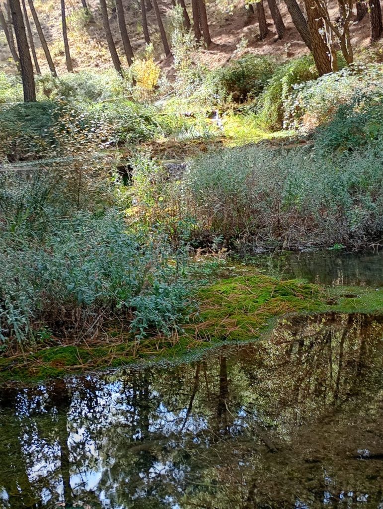 A primera hora de la mañana, una bruma suave cubría los pinares del Bellotar. La luz apenas se filtraba entre las ramas, dorando las hojas que el otoño ya había teñido de cobre y de oro viejo. El murmullo del agua, que emerge cristalina entre helechos y piedras, era el único sonido que rompía el silencio de la montaña.