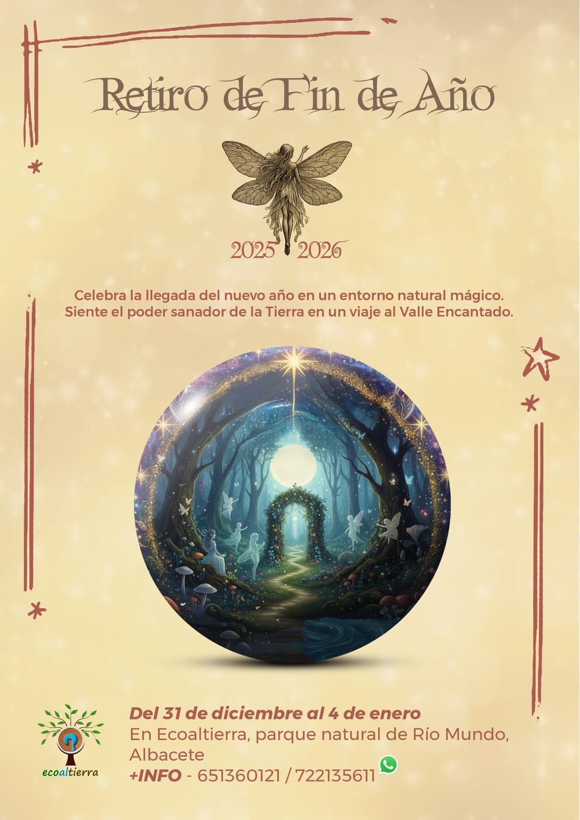 El colectivo EcoAlTierra, conocido por sus propuestas de conexión con la naturaleza y experiencias transformadoras en el entorno del Río Mundo, presenta una celebración de Fin de Año totalmente distinta a las habituales: “Un viaje al Valle Encantado”, un retiro temático que tendrá lugar del 31 de diciembre al 4 de enero en pleno Parque Natural de los Calares del Mundo y de la Sima.