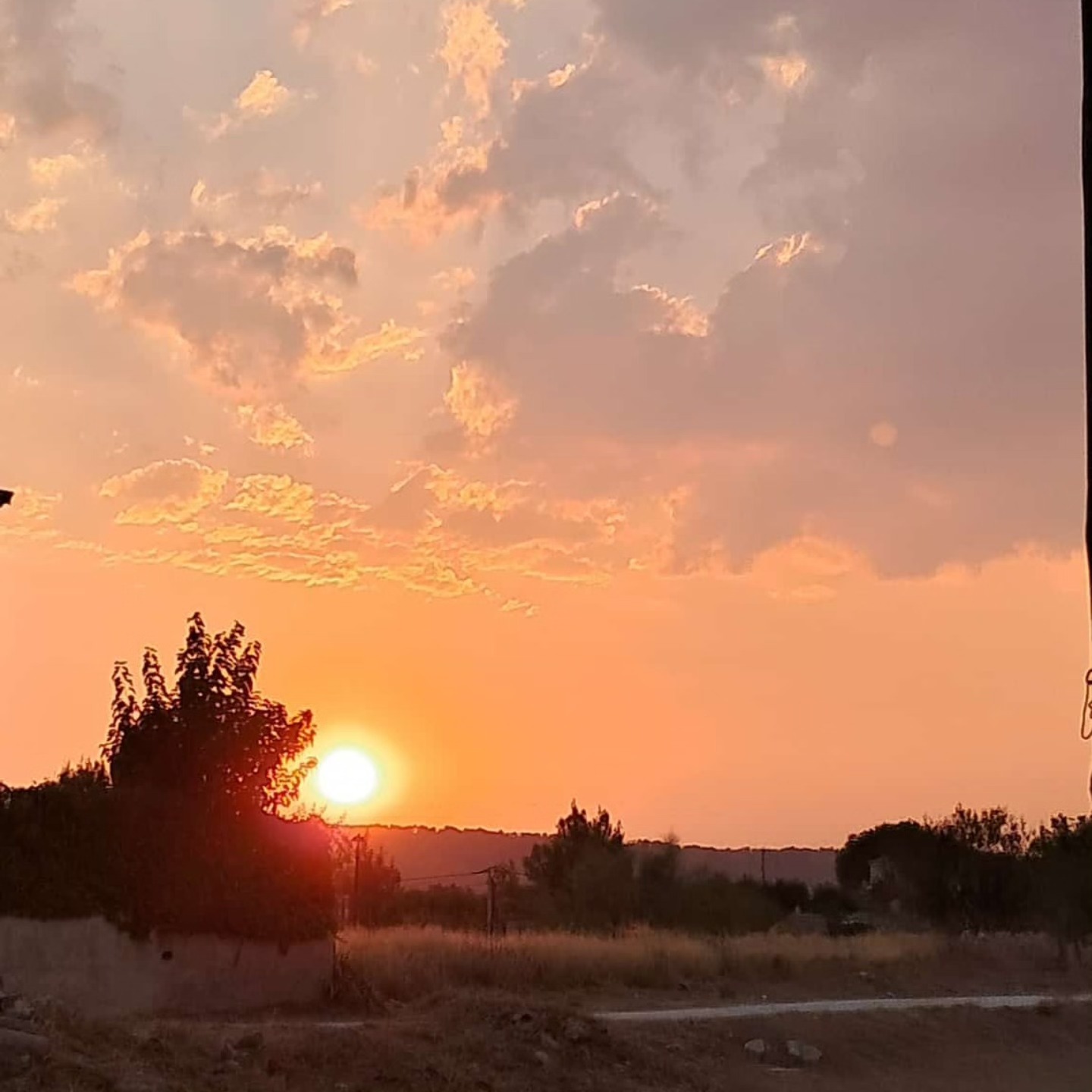 El sol se despide lentamente tras las montañas, y el cielo se enciende en tonos de fuego.