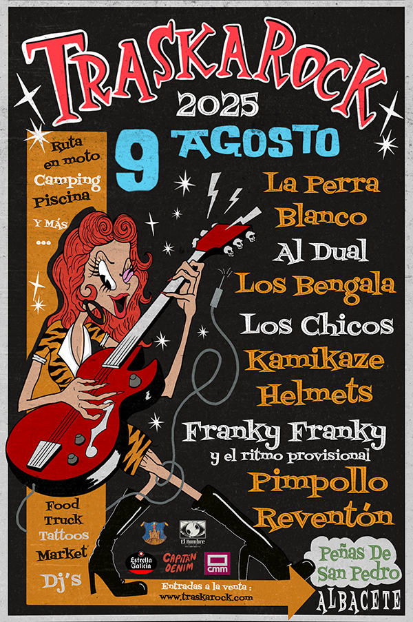 Este año, el cartel incluye artistas de primera línea como La Perra Blanco, Al Dual, Los Bengala, Los Chicos, Kamikaze Helmets, Franky Franky y el ritmo provisional o Pimpollo Reventón, entre otros. Una mezcla potente de rock’n’roll clásico, rhythm & blues, sonidos underground, rock actual y ritmos latinos, que garantiza una experiencia ecléctica y 100% disfrutable para todos los gustos.