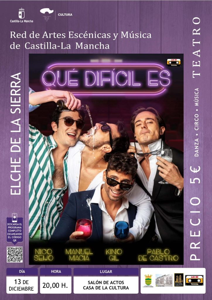 La programación continuará el sábado 13 de diciembre, a las 20:00 horas, con la representación teatral “¿Qué difícil es?”, una obra dirigida al público adulto que se celebrará en la Casa de la Cultura. Las entradas pueden adquirirse en el propio edificio o mediante reserva telefónica en el 967 410 778.