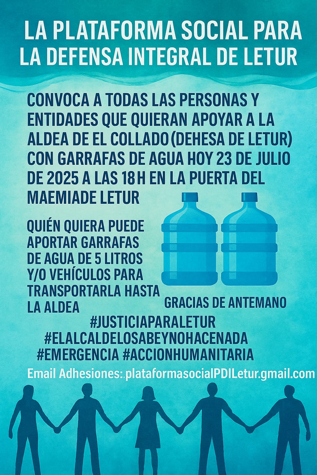 La Plataforma Social para la Defensa Integral de Letur exige acciones inmediatas al Ayuntamiento de Letur, la Junta de Castilla-La Mancha y la Confederación Hidrográfica del Segura. Entre otras, solicita:
