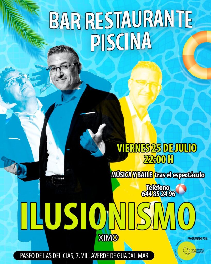 Este viernes 25 de julio, la piscina de Villaverde de Guadalimar arranca la primera de varias veladas de ocio veraniego con el espectáculo de ilusionismo del mago Ximo, seguido de música y baile para todos los públicos. La cita será a las 22:00 horas, con entrada libre y ambiente asegurado.