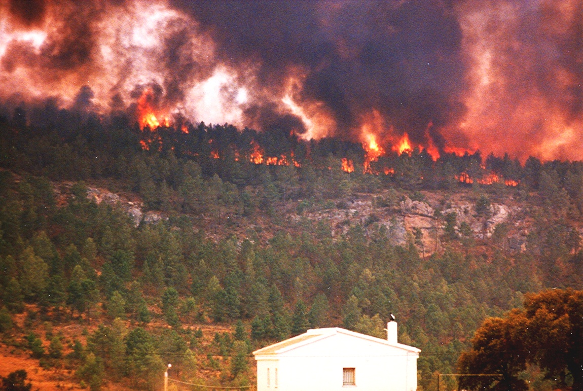 Foto: Aldea de Torre Pedro (Molinicos), agosto de 1994. Incendio de Yeste (Sierra del Segura). Foto Dalmy Gascón.