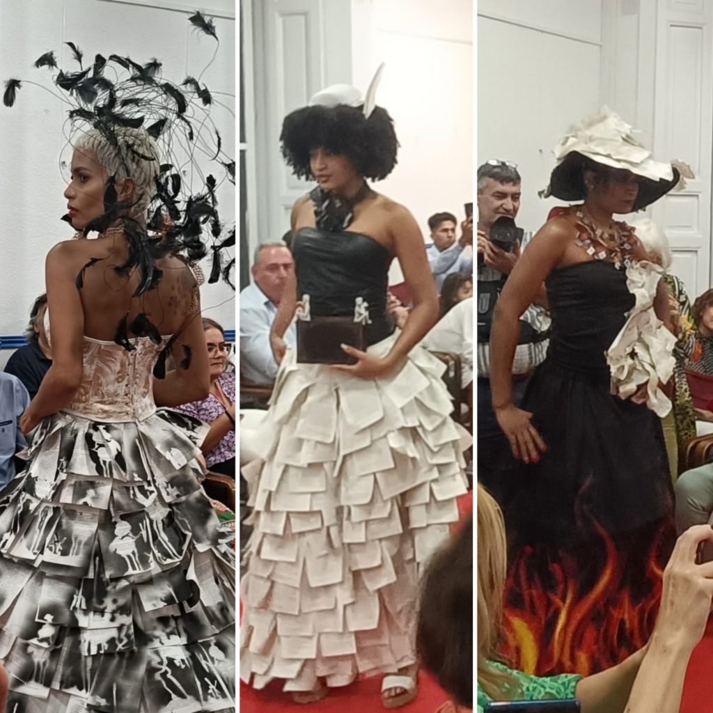 Finalmente desfilaron las modelos de ADA con trajes antes expuestos exitosamente en IFEMA: piezas inspiradas en la época de Don Quijote y los materiales caballerescos del siglo XVII. Además, lucieron también bellísimos y muy originales vestidos como tributo a la lectura.