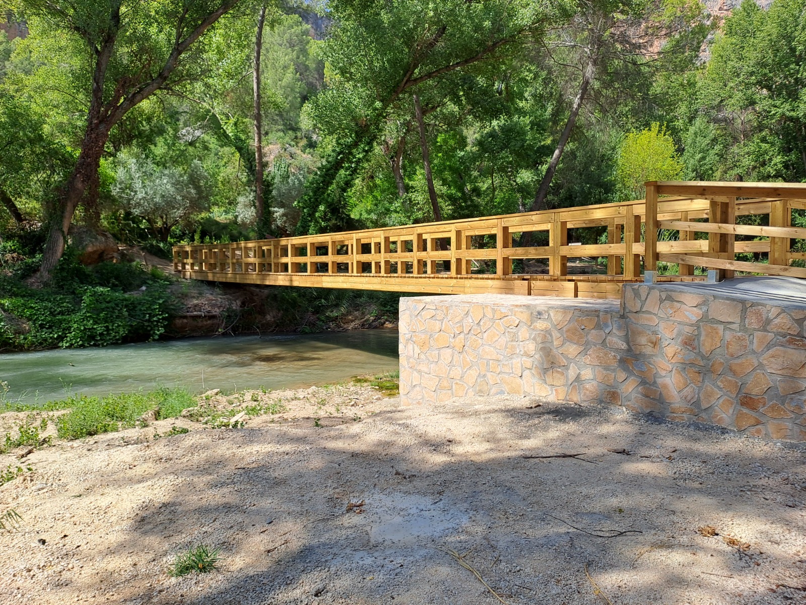 Otra de las infraestructuras incluidas en este paquete de obras es la pasarela de Bancalicos, en Elche de la Sierra, que quedó inutilizada tras la DANA. Tras su reposición, el paso se encuentra operativo desde el pasado mes de junio y, en las últimas semanas, se han llevado a cabo trabajos de integración paisajística. Con su reapertura, los vecinos de esta aldea han recuperado un acceso rápido y seguro al núcleo principal del municipio, lo que supone un alivio para la vida diaria y la actividad económica local.