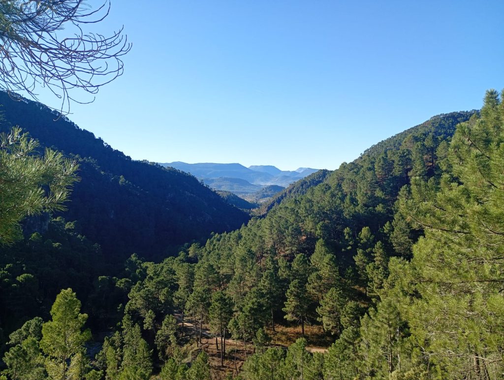 El recorrido atraviesa algunos de los entornos más representativos de la zona, ofreciendo barrancos, laderas luminosas, pinos centenarios y un silencio que sólo rompe la hojarasca congelada bajo los pasos del senderista.