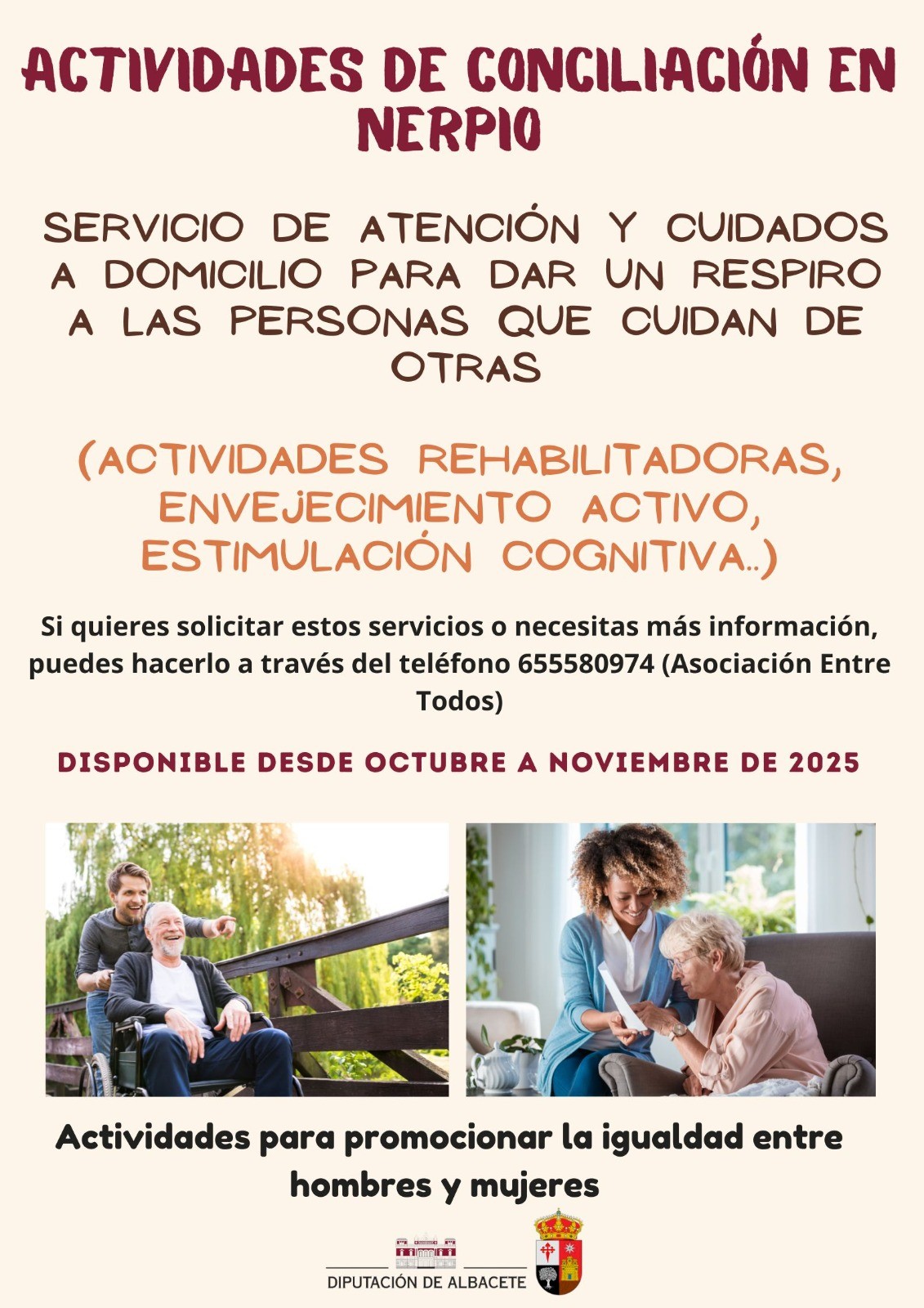 El Ayuntamiento de Nerpio, en colaboración con la Diputación Provincial de Albacete, ha puesto en marcha nuevas actividades de conciliación destinadas a ofrecer apoyo y respiro a las personas que se encargan de cuidar de otras, un colectivo que desempeña una labor esencial pero muchas veces invisible.