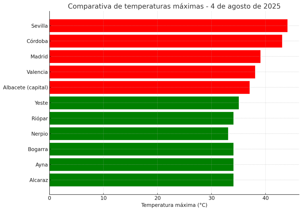 🔽 Comparativa de temperaturas máximas – 4 de agosto de 2025
