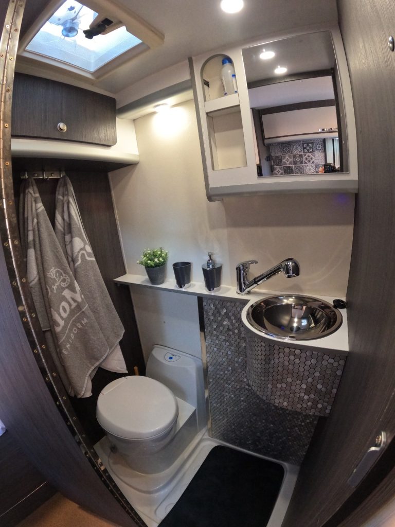 Tiene baño completo, cocina totalmente equipada, frigorífico eléctrico que “enfría mejor que el de casa”, calefacción, agua caliente y hasta aire acondicionado en el habitáculo, un lujo nada habitual en este tipo de vehículos