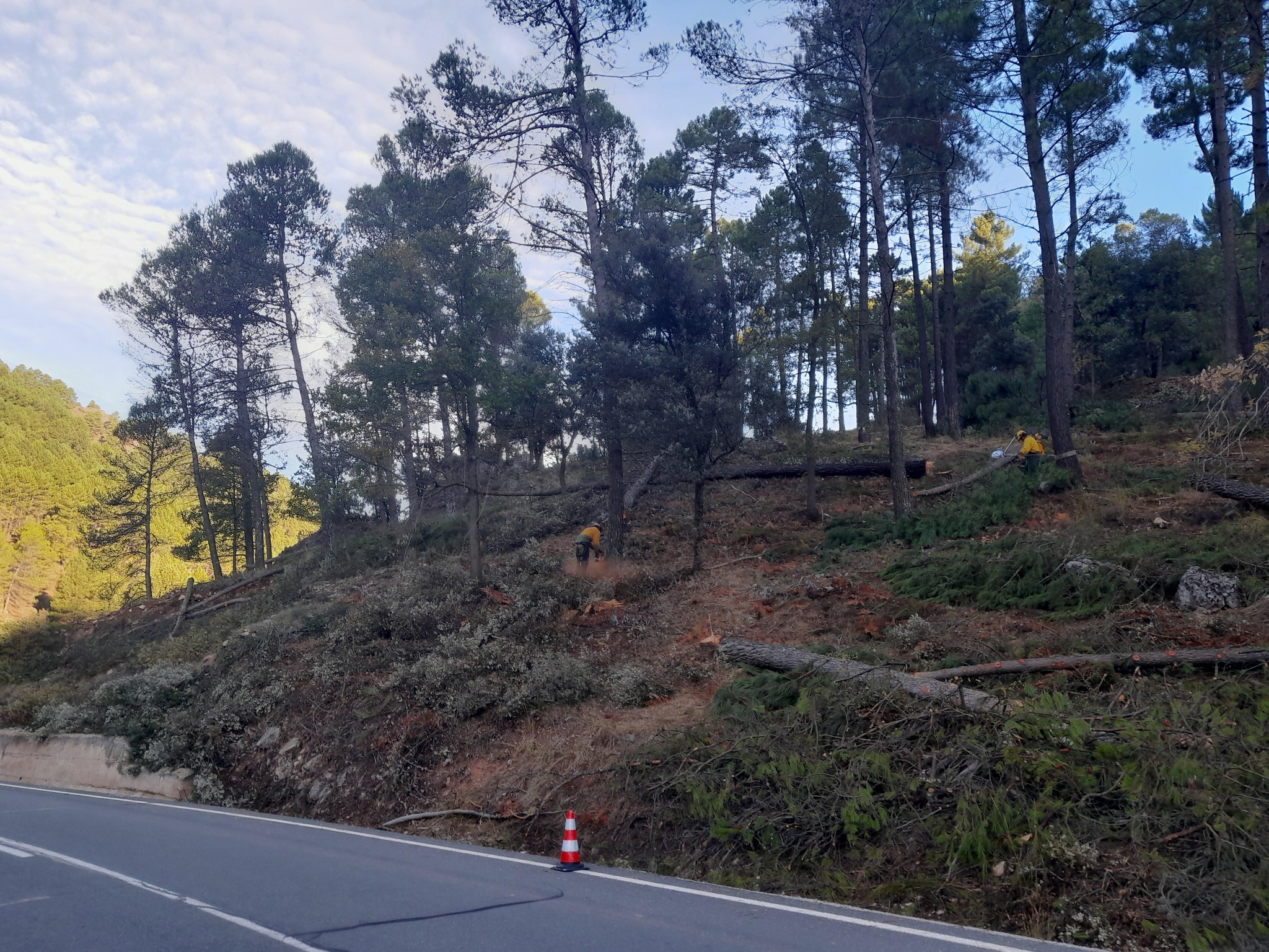 En esta ocasión las labores se desarrollan en un área de contención situada junto a la carretera CM-412, donde se están llevando a cabo desbroces, clareos y podas para reducir la intensidad de posibles incendios forestales cuando llegue el periodo de alto riesgo.