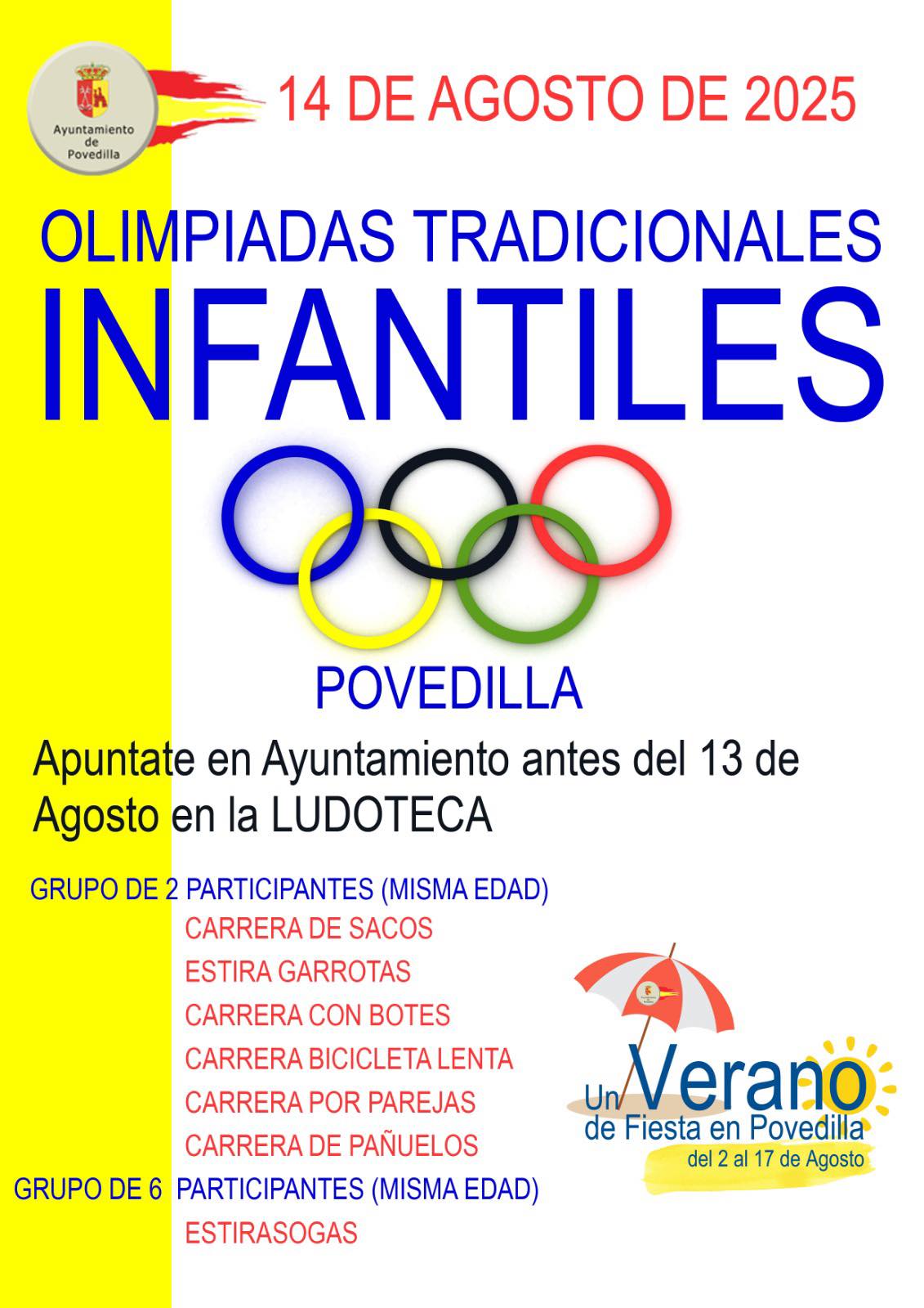 El verano en Povedilla llega cargado de actividades para todos los públicos, y uno de los eventos más esperados es, sin duda, el de las Olimpiadas Tradicionales Infantiles, que se celebrarán el 14 de agosto dentro del ciclo festivo “Un Verano de Fiesta en Povedilla”, que se extiende del 2 al 17 de este mes.