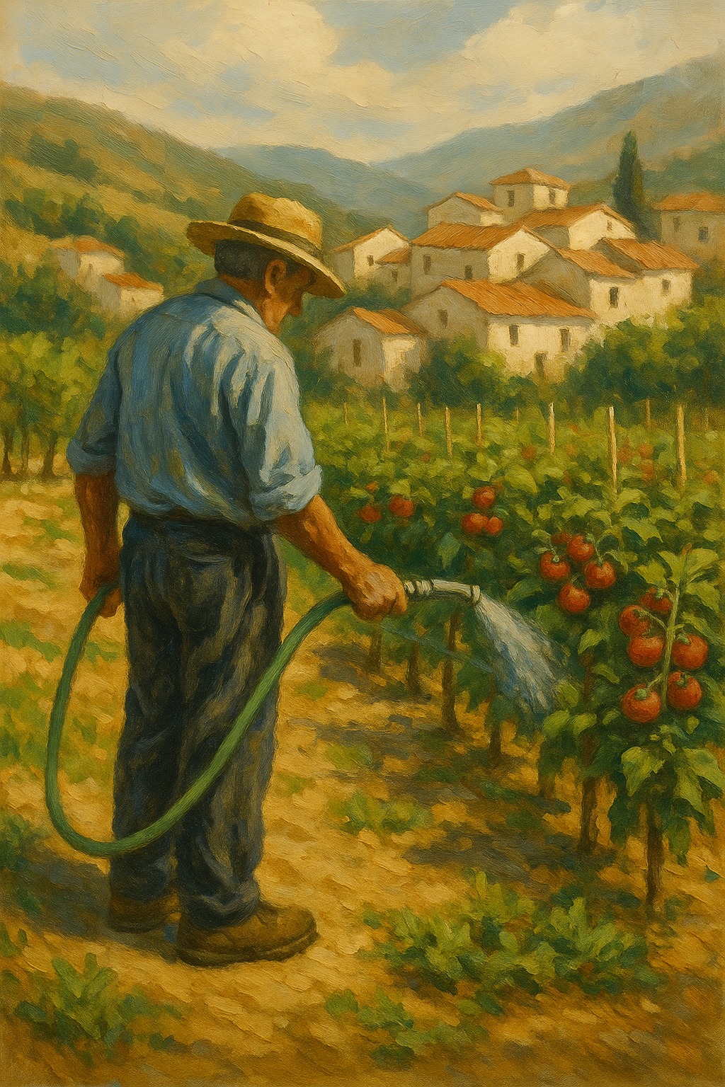 La presión del agua empieza a flojear en algunas zonas del municipio, y no hay que investigar mucho para saber por qué. Los huertos familiares —tan típicos como queridos en nuestro pueblo— florecen con fuerza, pero también tiran del grifo más de la cuenta, -así como un aumento de consumo por la afluencia de veraneantes- todo hay que decirlo, lo que termina afectando a todos los vecinos.