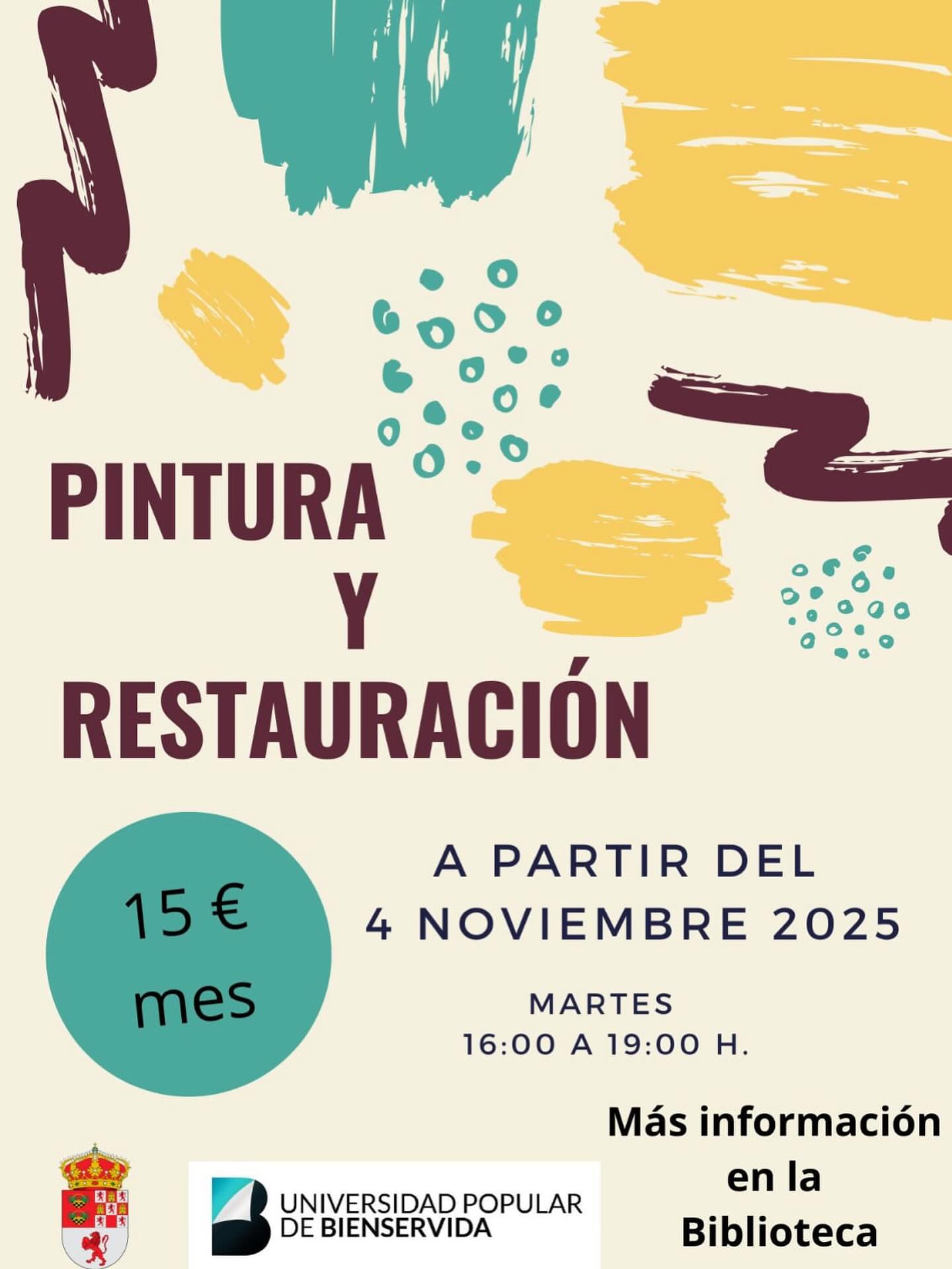 El Ayuntamiento de Bienservida, a través de la Universidad Popular, ha anunciado la puesta en marcha de un nuevo curso de Pintura y Restauración, que comenzará el próximo 4 de…