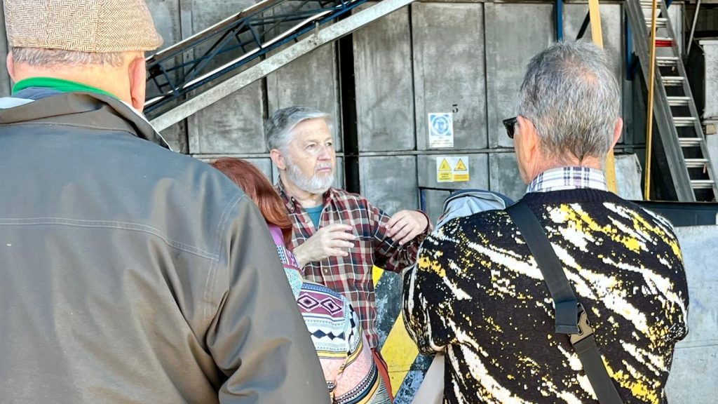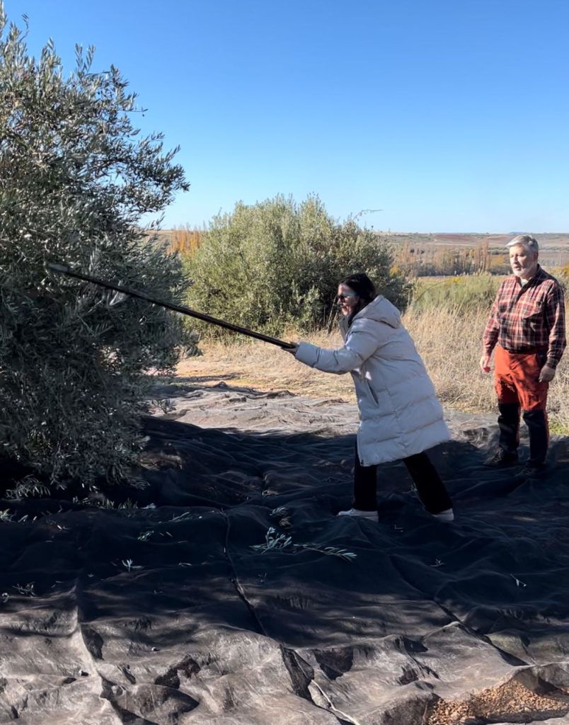 La jornada arrancó, como es habitual en este programa, trasladándose primero a un olivar cercano para mostrar el trabajo tradicional de la recolección. Allí se explicaron los métodos actuales y se realizó una demostración práctica del vareo y vibrado de los olivos, permitiendo a los participantes ver de primera mano el inicio del proceso antes de que la aceituna llegue a la almazara.