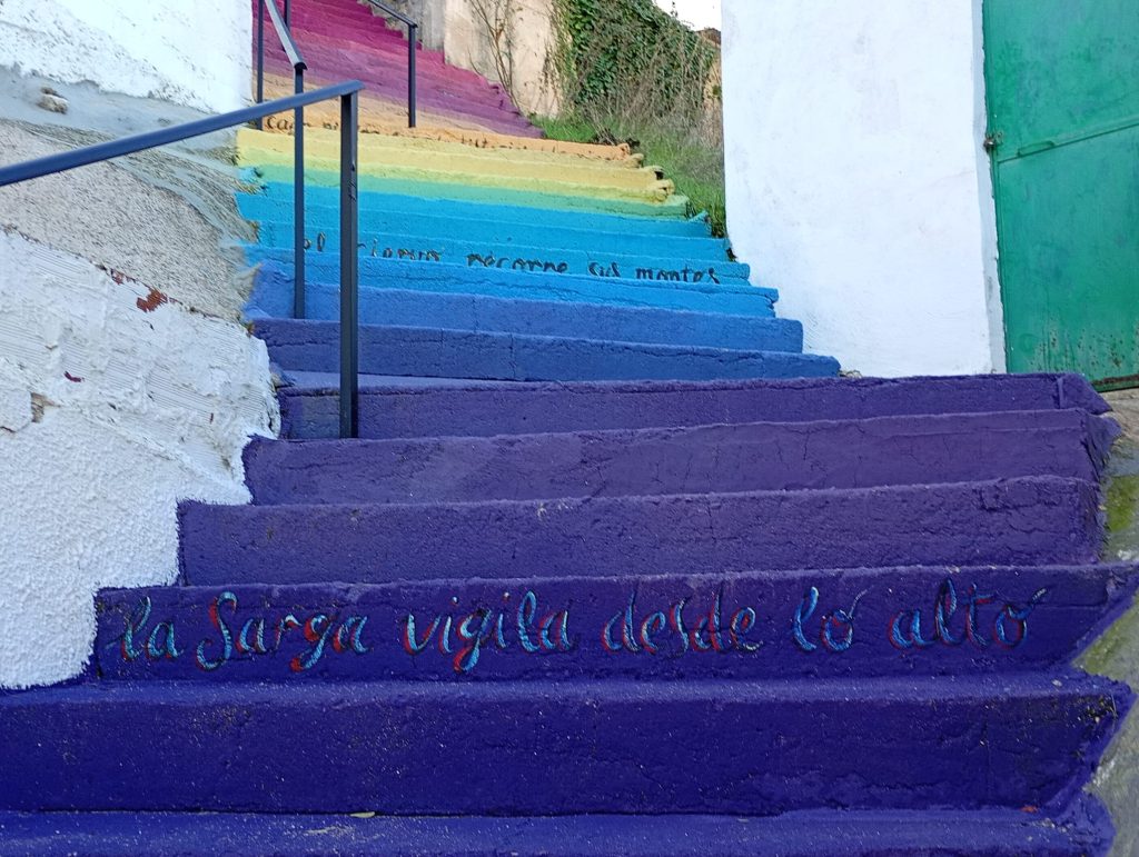 El Ayuntamiento de Villaverde ha llevado a cabo una iniciativa para embellecer uno de los accesos del municipio mediante la pintura de una escalera en tonos arcoíris. La intervención artística ha sido ejecutada por Julián, reconocido pintor de la Sierra y también autor del mural ubicado en la subida hacia el Ayuntamiento.